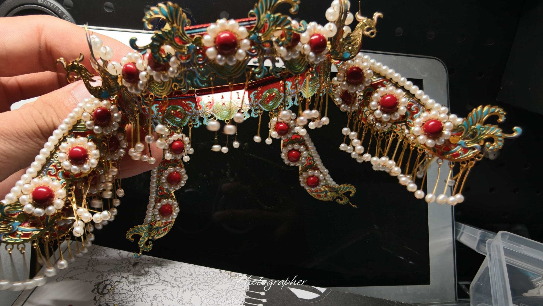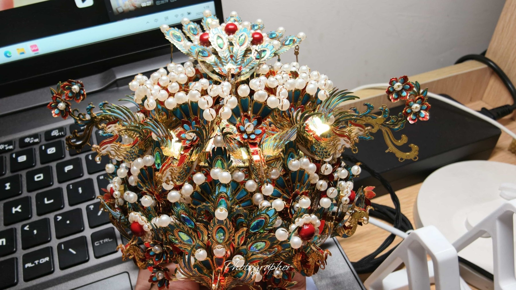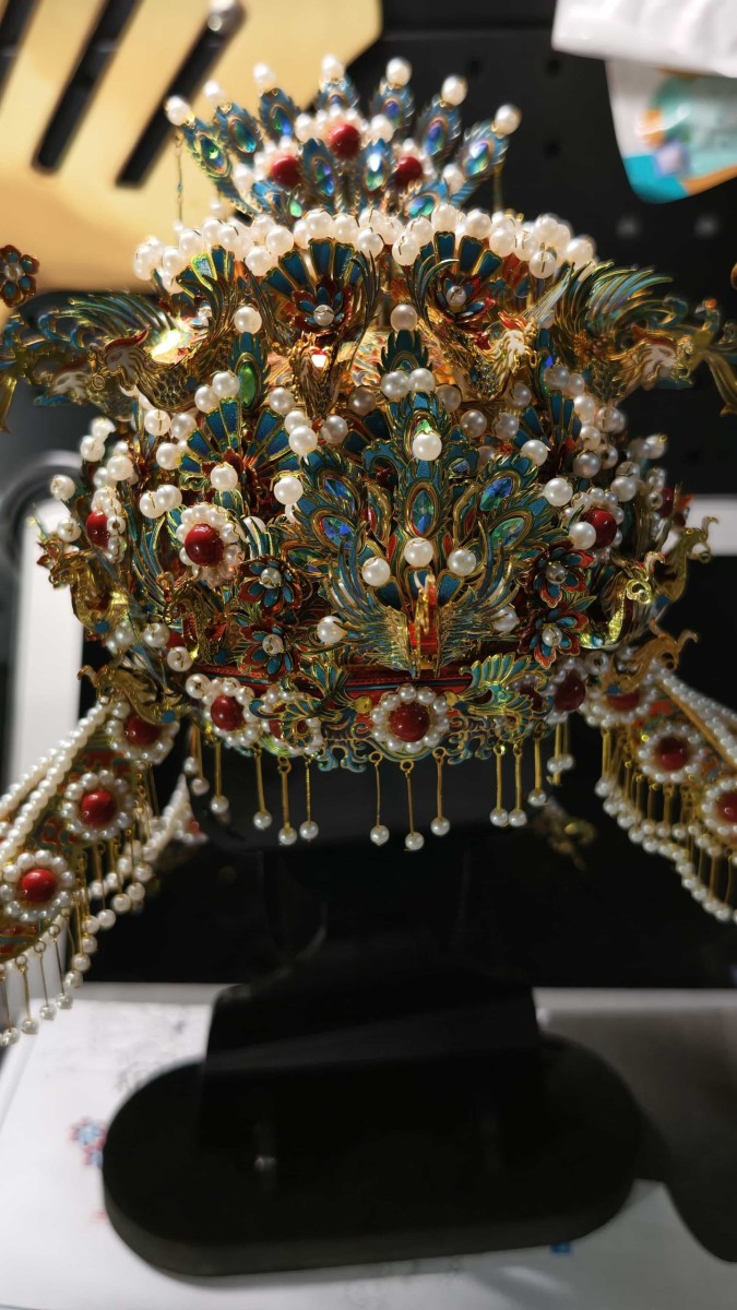 🤵💕👰老姐结婚,奉上拼装的点翠头冠一顶